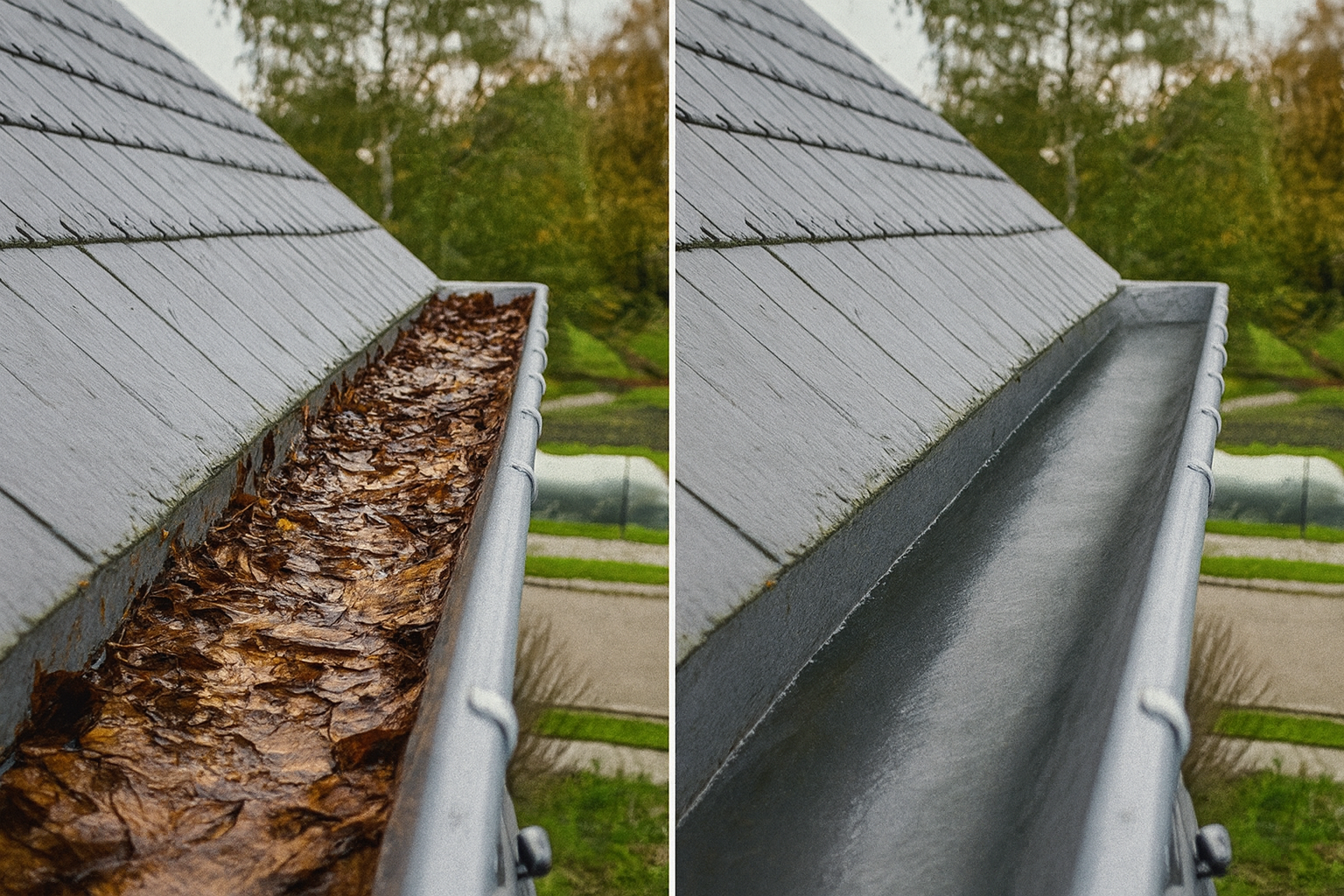 Vi fjerner blade, mos og snavs fra dine tagrender, så vandet kan løbe frit og beskytter huset mod fugtskader.